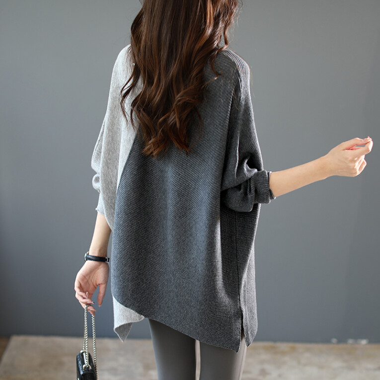 针织衫女套头毛衣宽松外穿上衣春秋装新款女装洋气蝙蝠袖针织打底衫